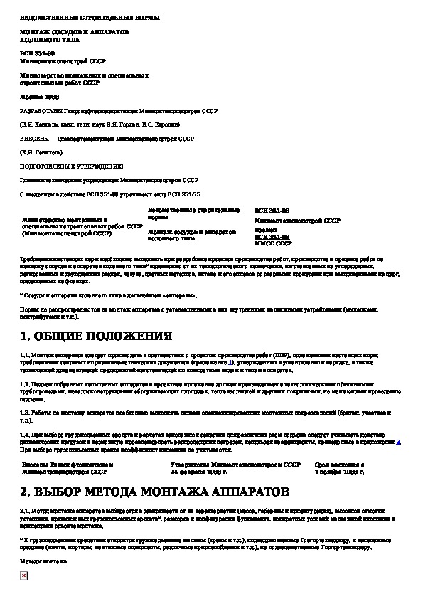 ВСН 351-88: Монтаж сосудов и аппаратов колонного типа