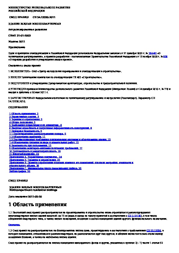 СП 54.13330.2011: Здания жилые многоквартирные