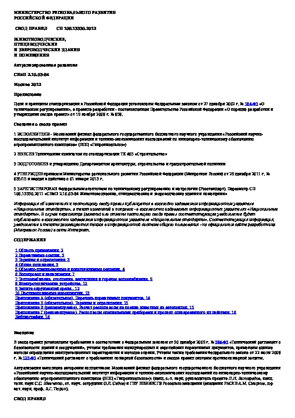 СП 106.13330.2012: Животноводческие, птицеводческие и звероводческие здания и помещения