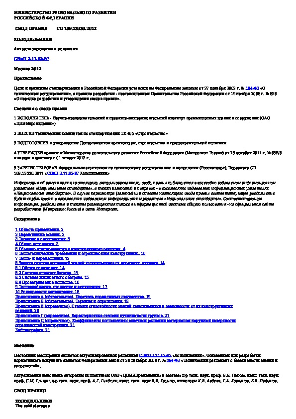 СП 109.13330.2012: Холодильники