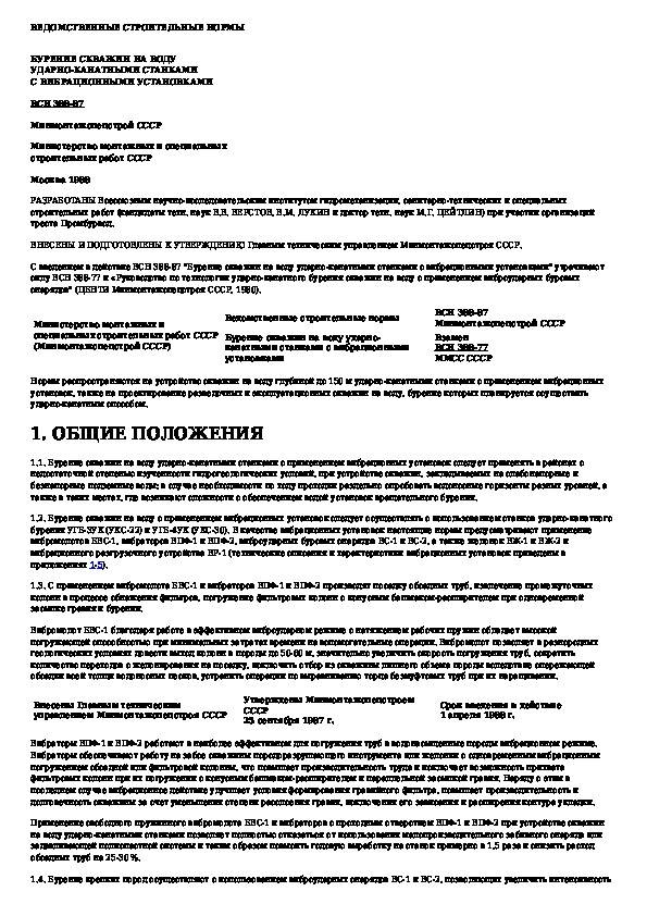 ВСН 388-87: Бурение скважин на воду ударно-канатными станками с вибрационными установками