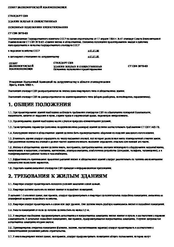 СТ СЭВ 3976-83: Здания жилые и общественные. Основные положения проектирования