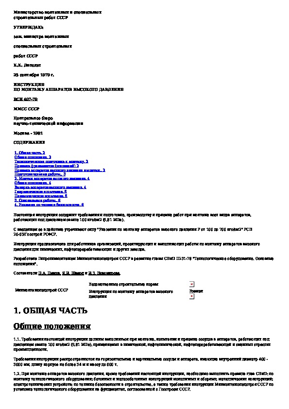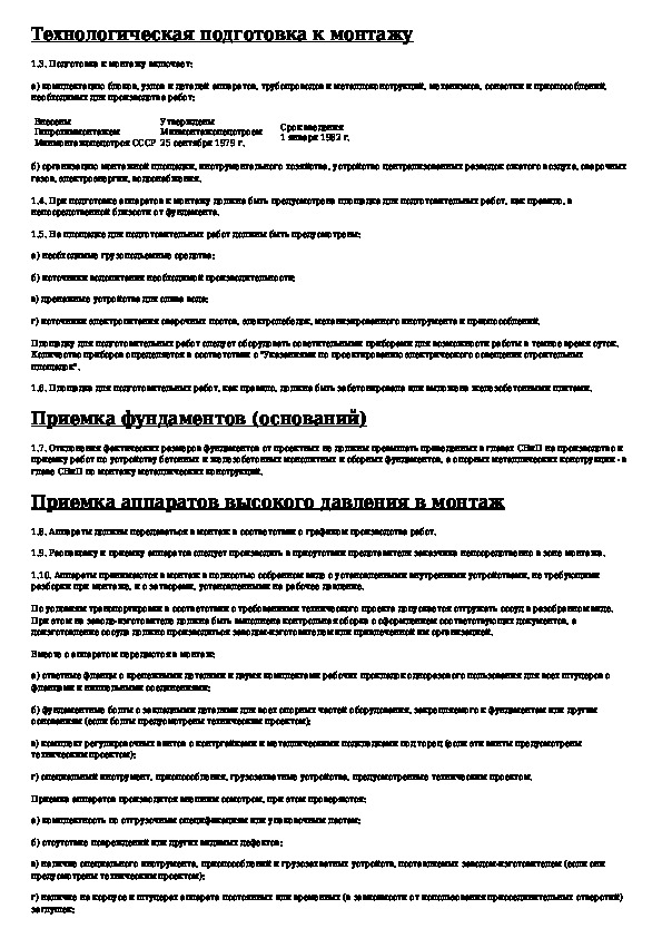 ВСН 407-79: Инструкция по монтажу аппаратов высокого давления