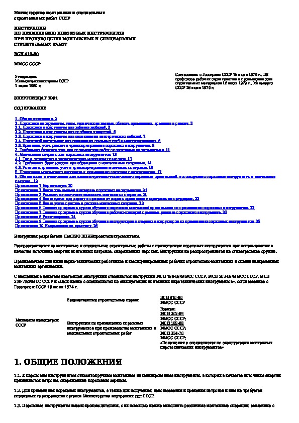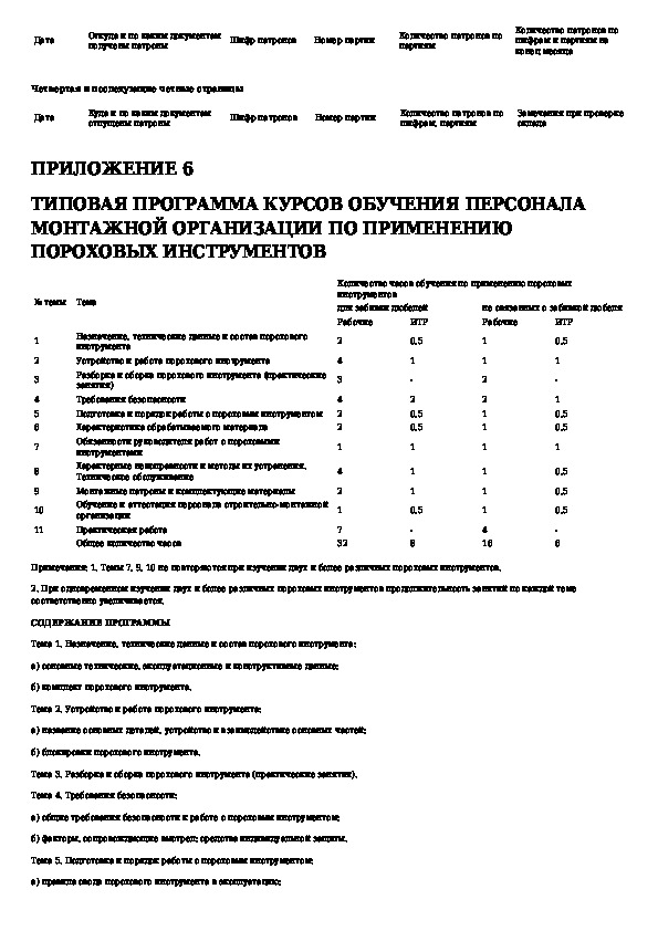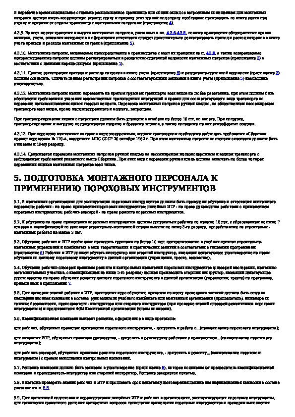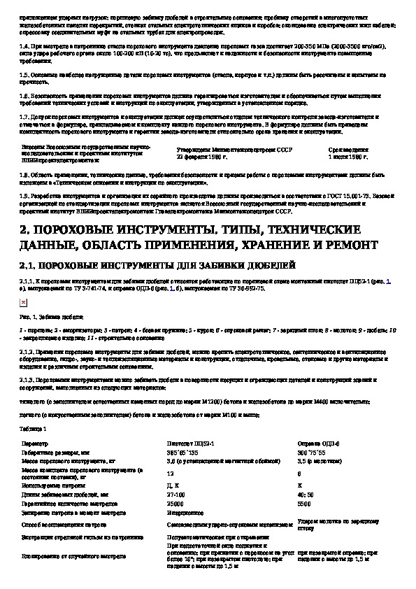 Инструкция по применению пороховых инструментов при производстве монтажных и специальных строительных работ