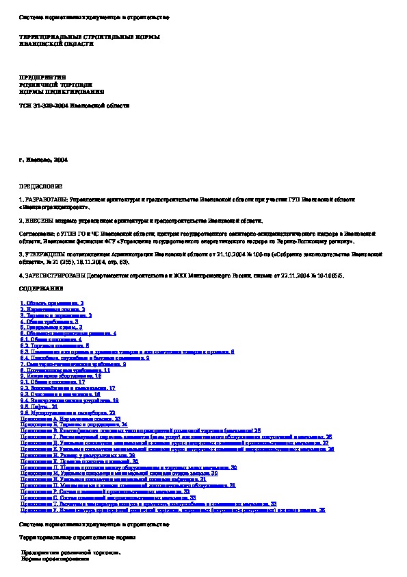 ТСН 31-329-2004: Предприятия розничной торговли. Нормы проектирования. Ивановская область