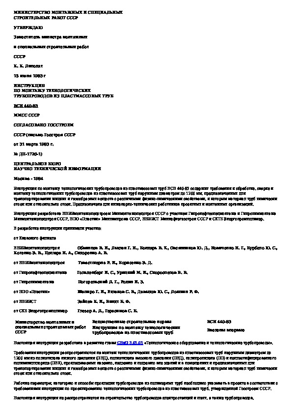Наша цель состоит в том, чтобы предоставить вам быстрый доступ к содержанию документа Инструкция по монтажу технологических трубопроводов из пластмассовых труб.
