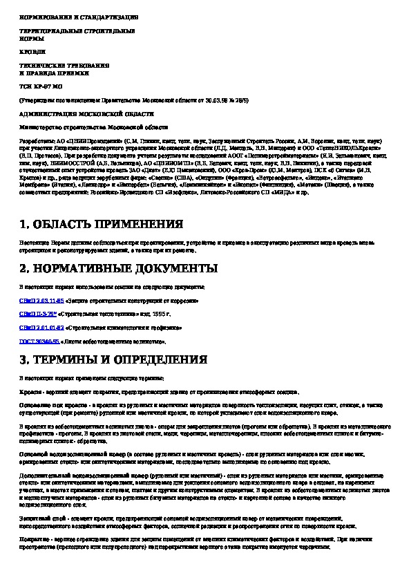 ТСН КР-97 МО: Кровли. Технические требования и правила приемки