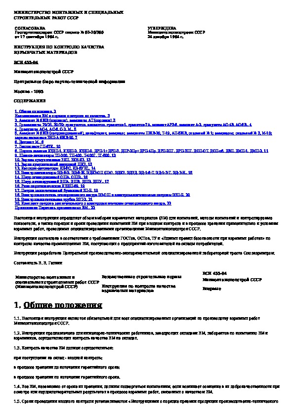 ВСН 455-84: Инструкция по контролю качества взрывчатых материалов