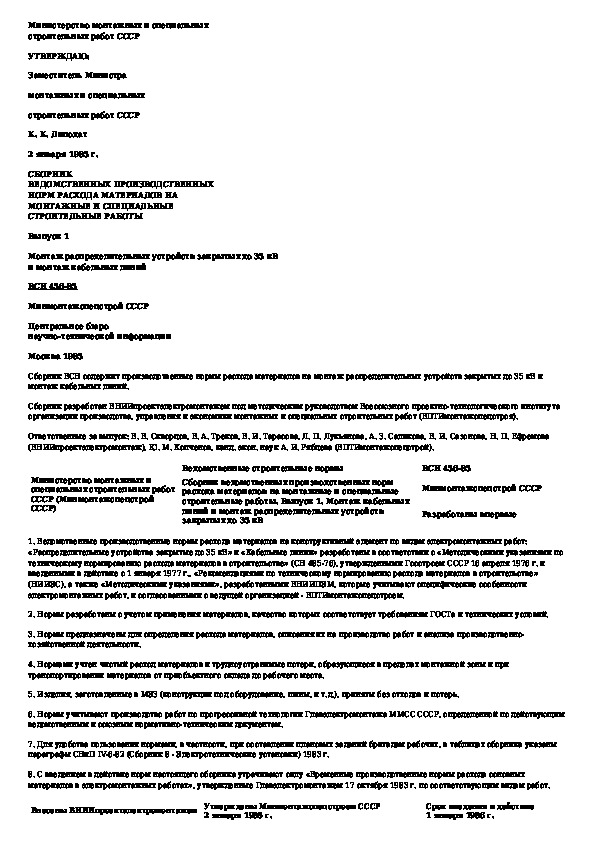 ВСН 456-85: Сборник ведомственных производственных норм расхода материалов на монтажные и специальные строительные работы. Выпуск I. Монтаж р