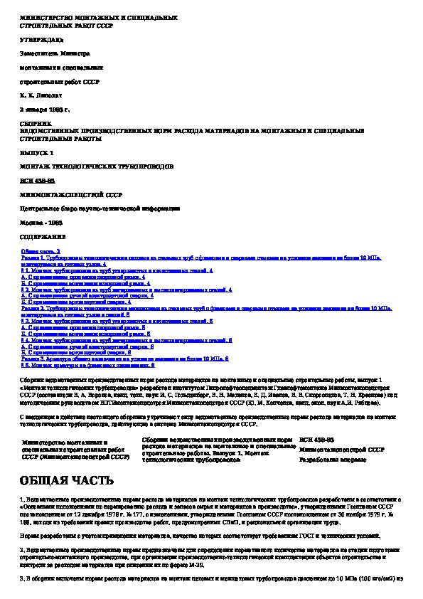 Наша цель состоит в том, чтобы предоставить вам быстрый доступ к содержанию документа Сборник ведомственных производственных норм расхода материалов на монтажные и специальные строительные работы. Выпуск 1. Монтаж т.