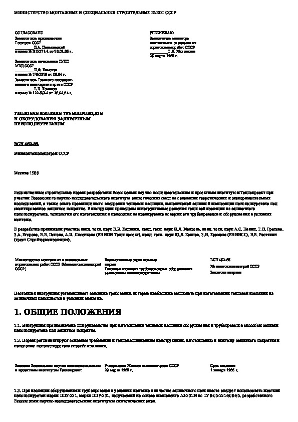 ВСН 462-85: Тепловая изоляция трубопроводов и оборудования заливочным пенополиуретаном