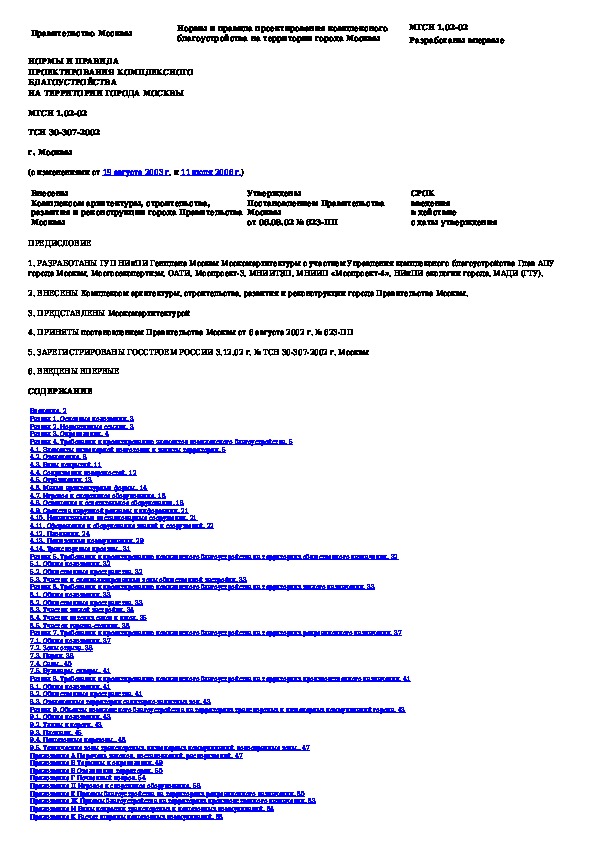 ТСН 30-307-2002: Нормы и правила проектирования комплексного благоустройства на территории города Москвы