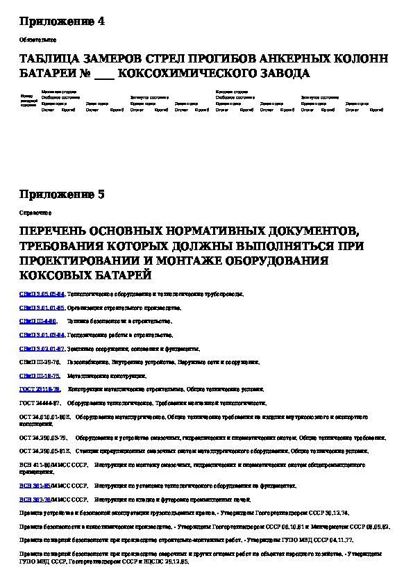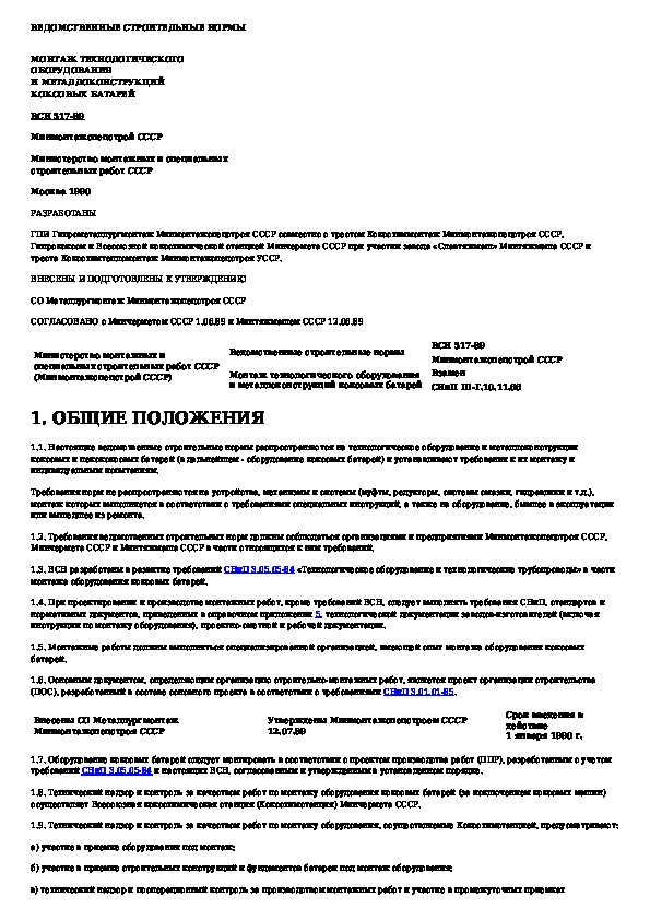 ВСН 517-89: Монтаж технологического оборудования и металлоконструкций коксовых батарей
