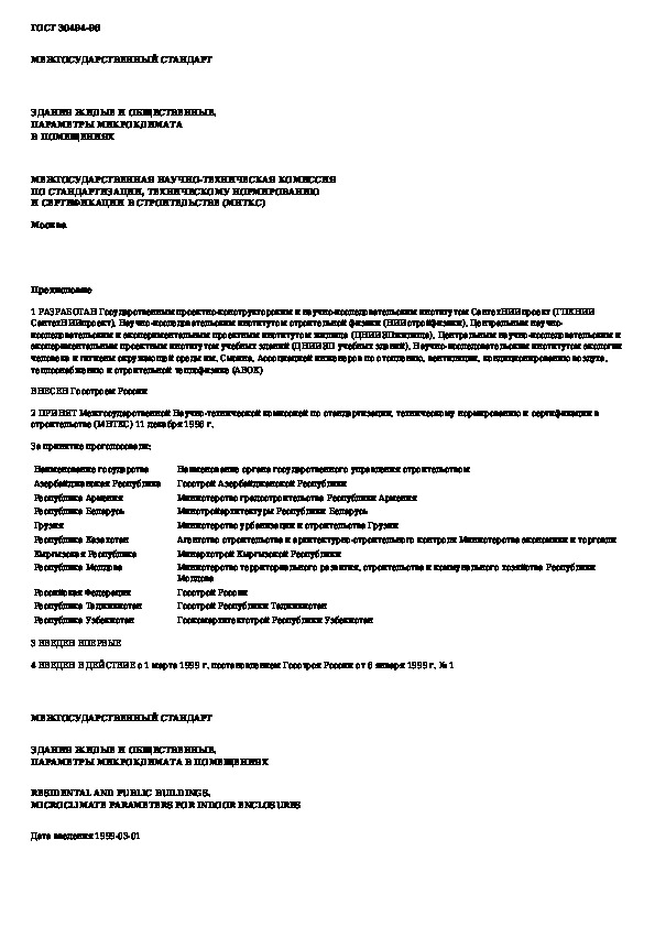 ГОСТ 30494-96: Здания жилые и общественные. Параметры микроклимата в помещениях