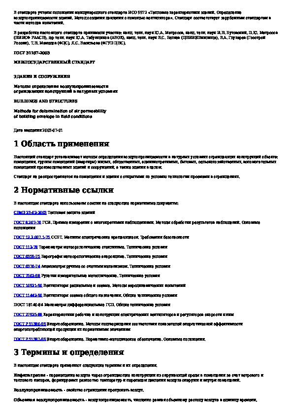Наша цель состоит в том, чтобы предоставить вам быстрый доступ к содержанию документа Здания и сооружения. Методы определения воздухопроницаемости ограждающих конструкций в натурных условиях.