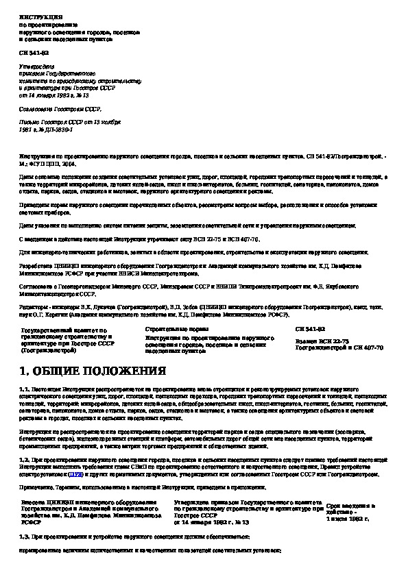 СН 541-82: Инструкция по проектированию наружного освещения городов, поселков и сельских населенных пунктов