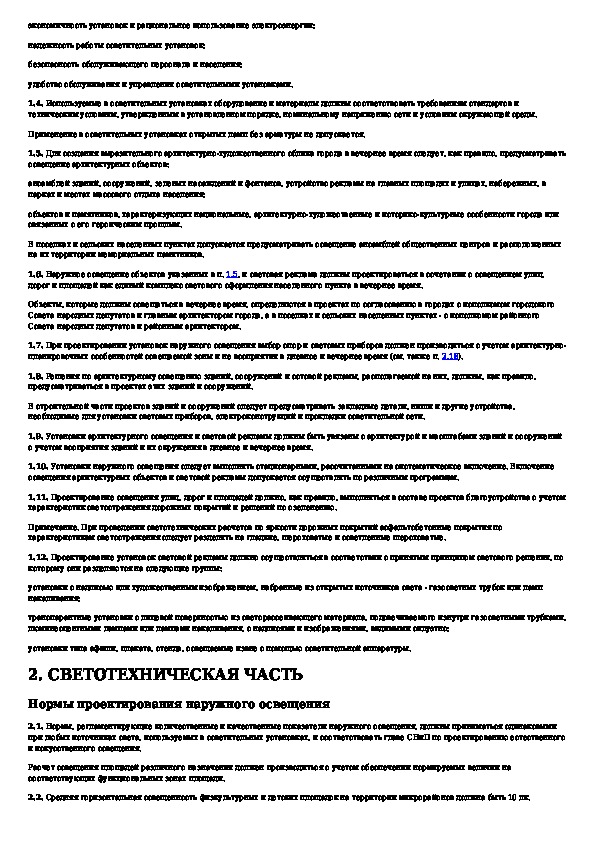 Инструкция по проектированию наружного освещения городов, поселков и сельских населенных пунктов