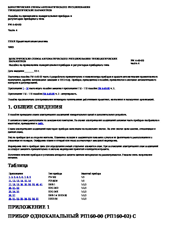 РМ 4-49-93: Электрические схемы автоматического регулирования технологических параметров. Пособие по применению измерительных приборов и р