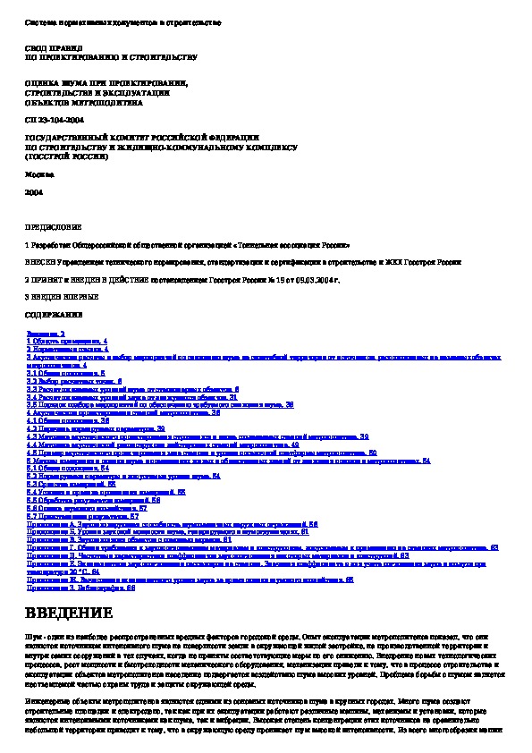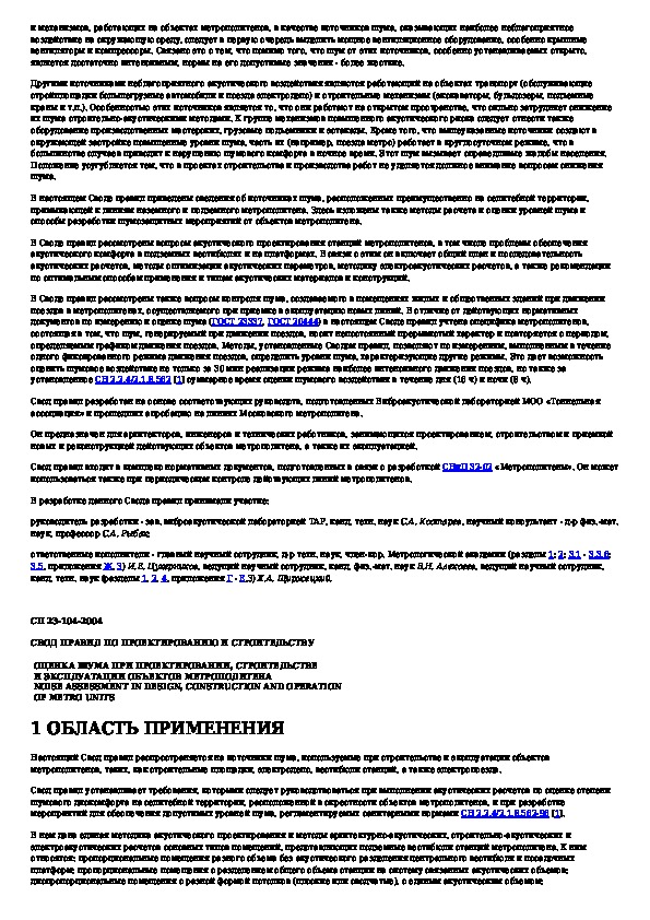СП 23-104-2004: Оценка шума при проектировании, строительстве и эксплуатации объектов метрополитена