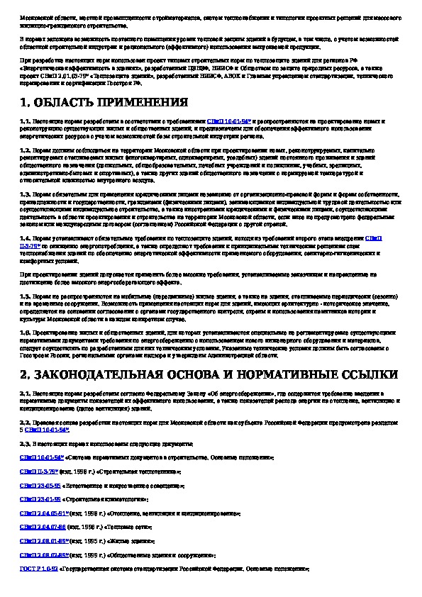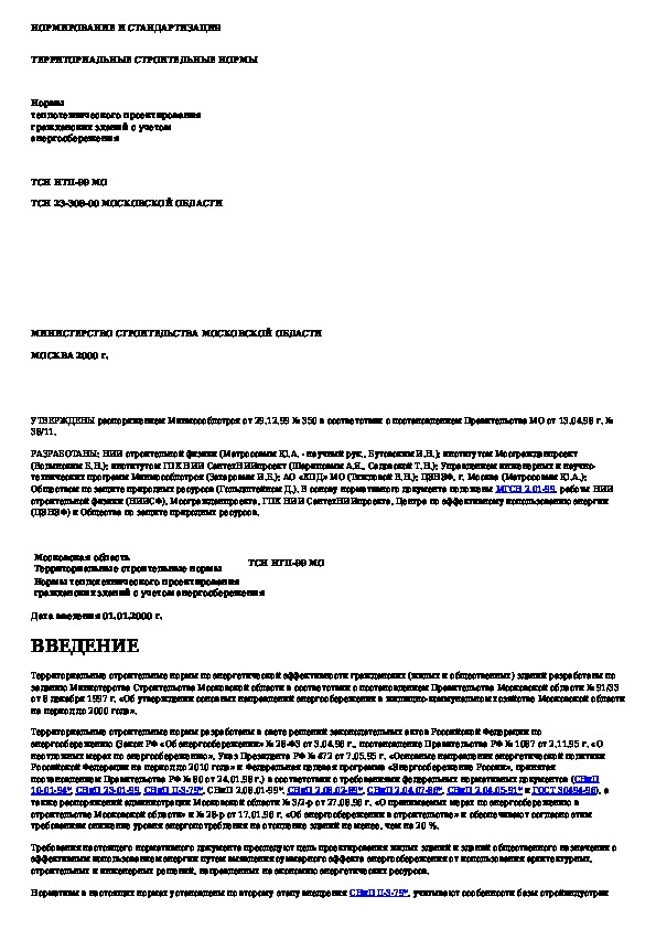 Нормы теплотехнического проектирования гражданских зданий с учетом энергосбережения Московская область