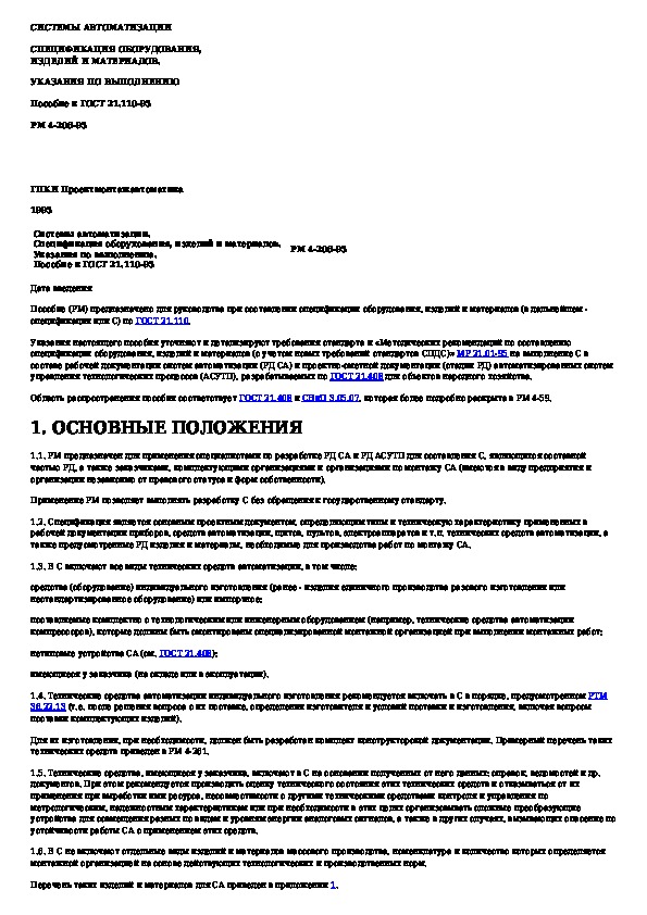 Наша цель состоит в том, чтобы предоставить вам быстрый доступ к содержанию документа Системы автоматизации. Спецификация оборудования, изделий и материалов. Указания по выполнению. Пособие к ГОСТ 21.110-95.