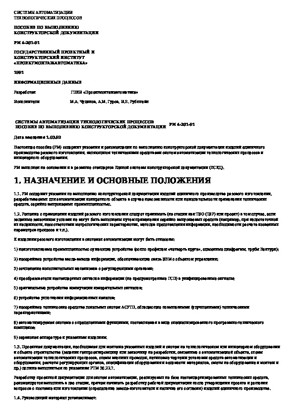 РМ 4-261-91: Системы автоматизации технологических процессов. Пособие по выполнению конструкторской документации