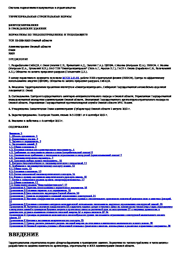 ТСН 23-338-2002: Энергосбережение в гражданских зданиях. Нормативы по теплопотреблению и теплозащите. Омская область