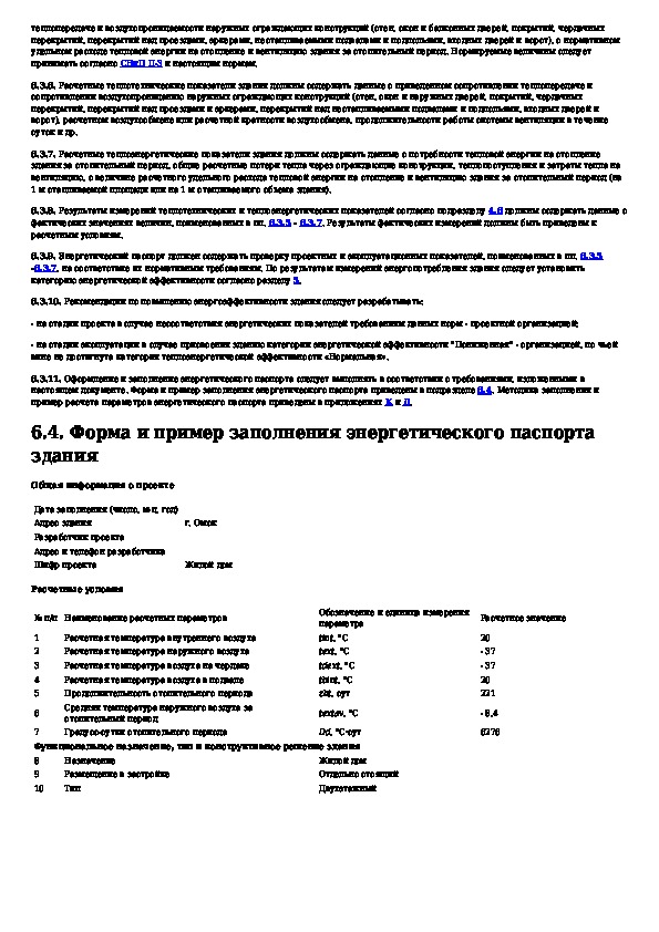 Энергосбережение в гражданских зданиях. Нормативы по теплопотреблению и теплозащите. Омская область