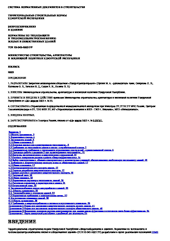 ТСН 23-345-2003: Энергосбережение в зданиях. Нормативы по теплозащите и тепловодоэлектроснабжению жилых и общественных зданий. Удмуртская Респуб