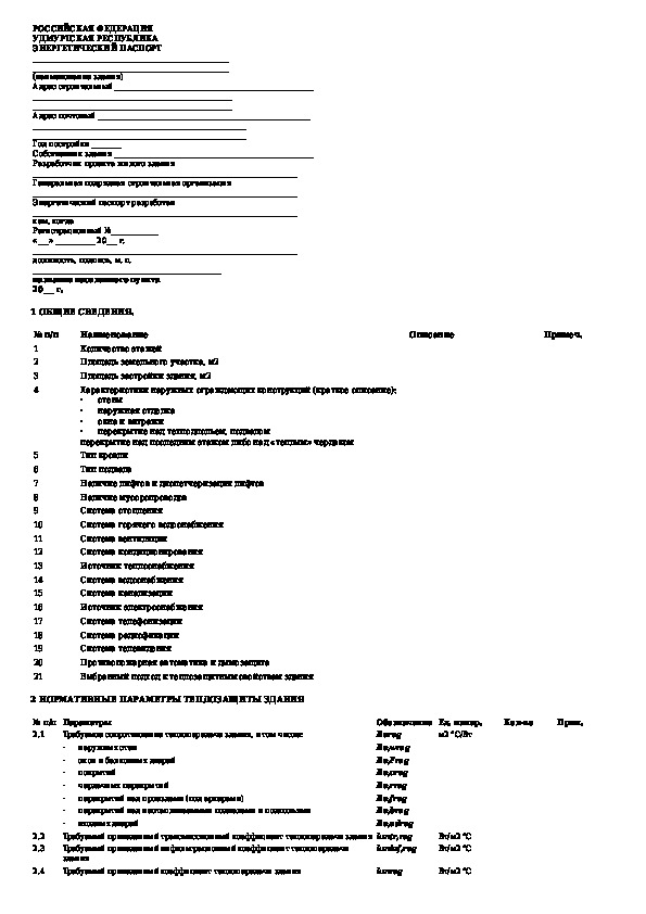 Энергосбережение в зданиях. Нормативы по теплозащите и тепловодоэлектроснабжению жилых и общественных зданий. Удмуртская Респуб