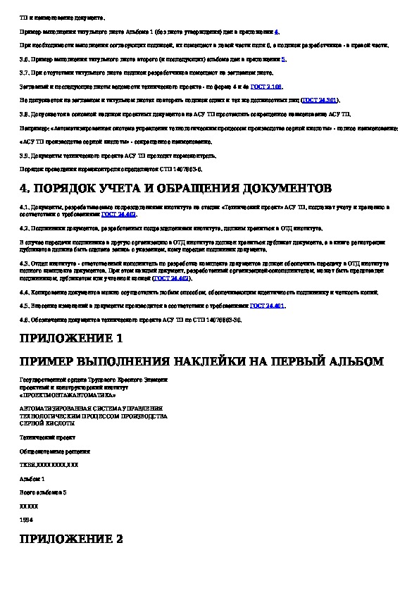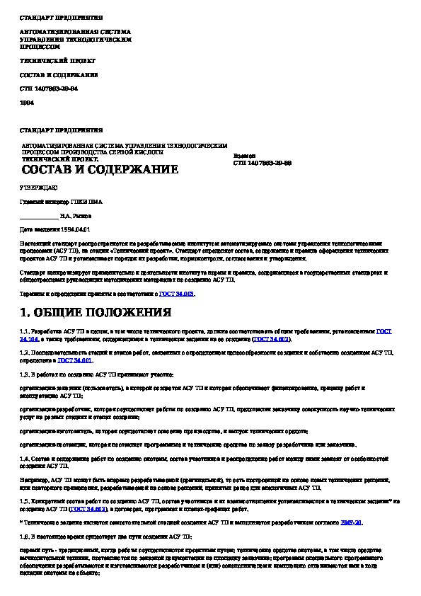 СТП 1407863-29-94: Автоматизированная система управления технологическим процессом. Технический проект. Состав и содержание