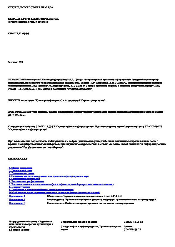 СНиП 2.11.03-93: Склады нефти и нефтепродуктов. Противопожарные нормы