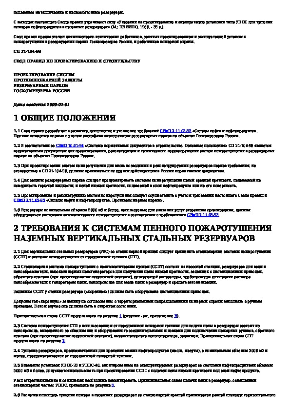 СП 21-104-98: Проектирование систем противопожарной защиты резервуарных парков Госкомрезерва России