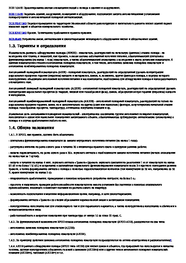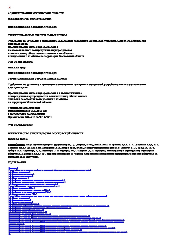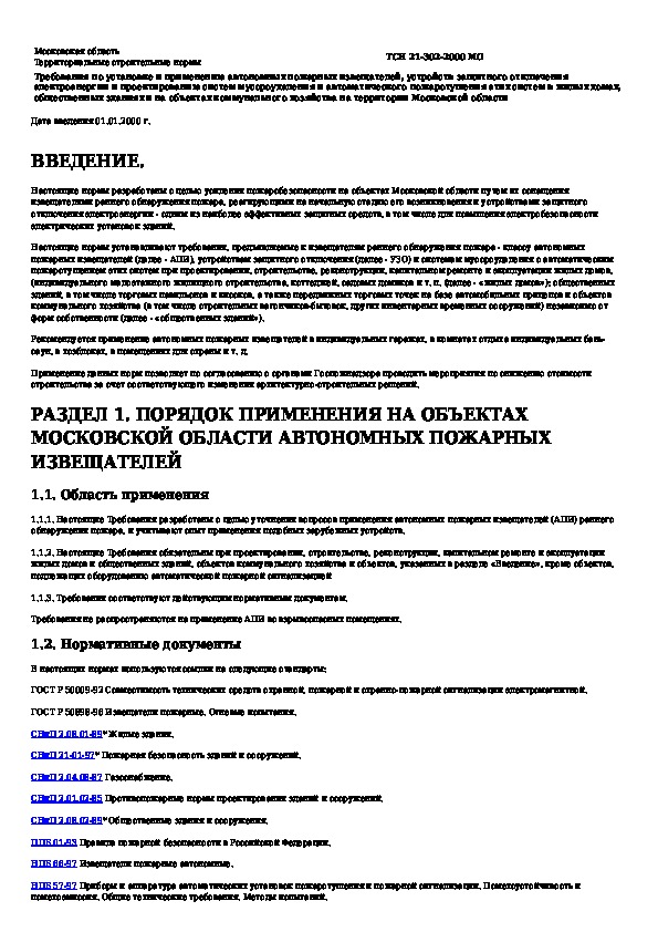 ТСН 21-302-2000: Требования по установке и применению автономных пожарных извещателей, устройств защитного отключения электроэнергии. Проектиров