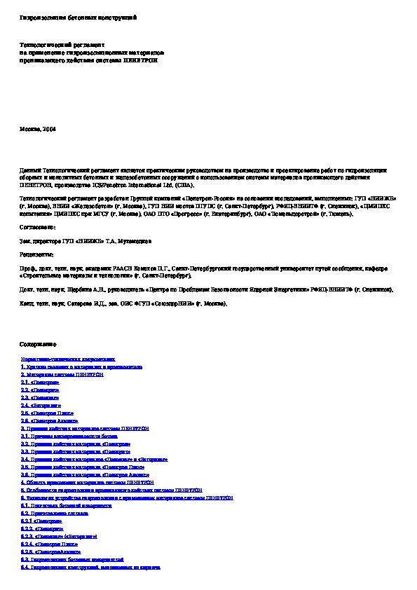 Наша цель состоит в том, чтобы предоставить вам быстрый доступ к содержанию документа Технологический регламент на применение гидроизоляционных материалов проникающего действия системы ПЕНЕТРОН.
