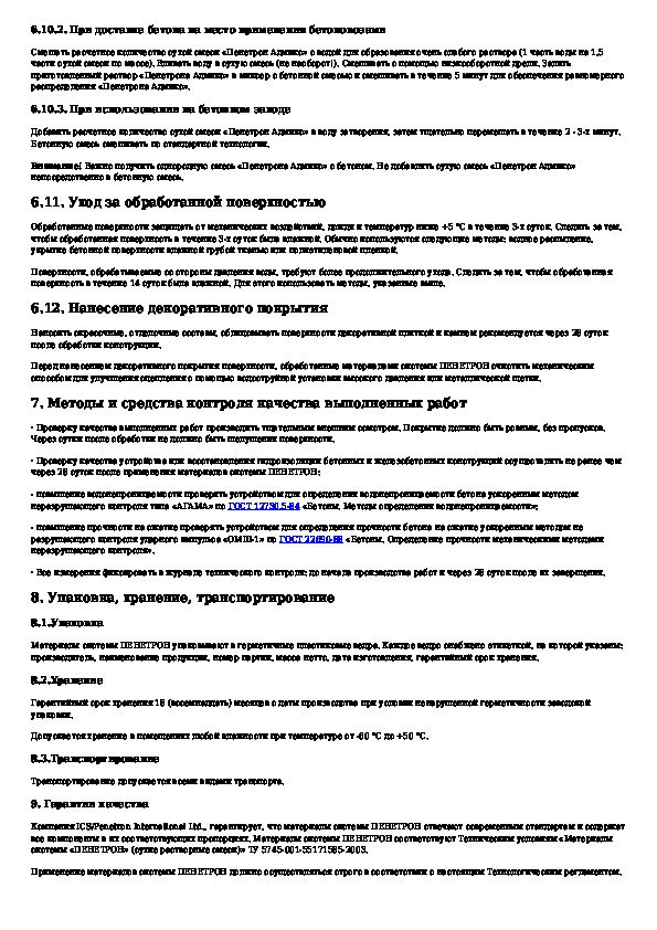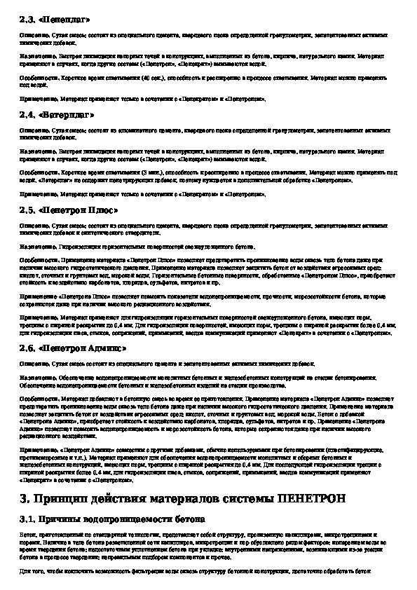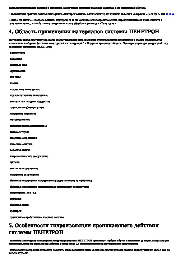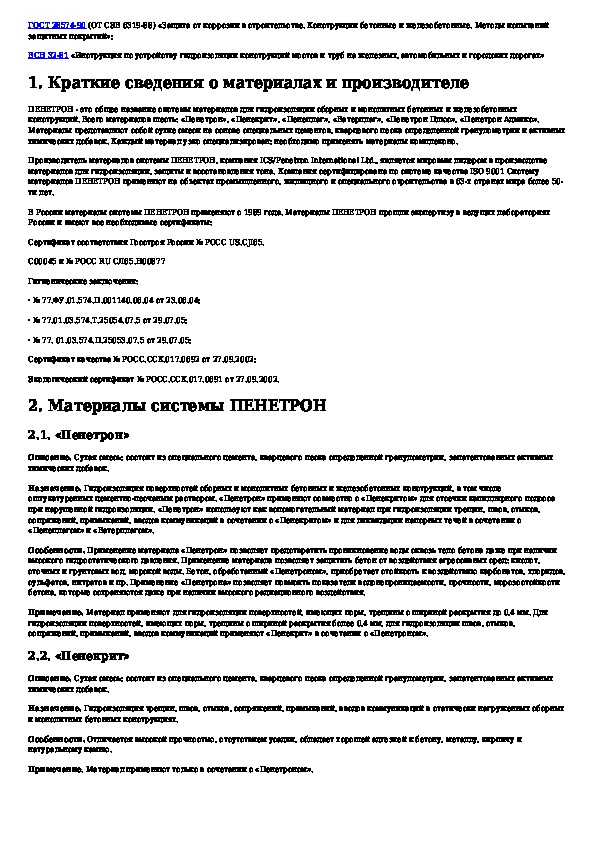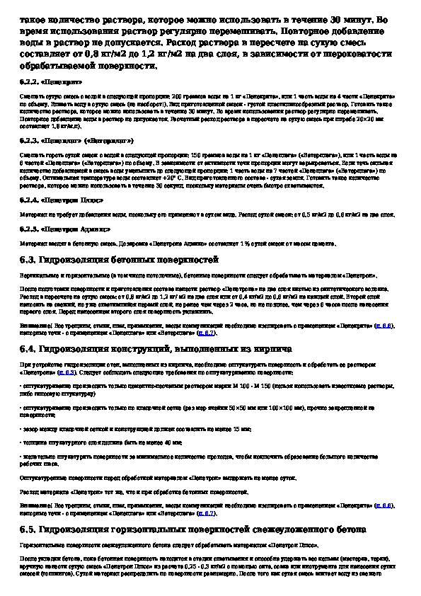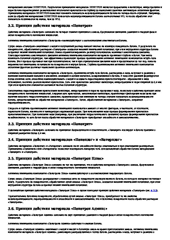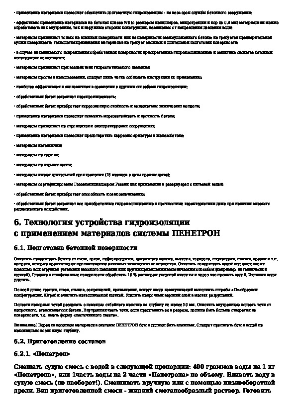 Технологический регламент на применение гидроизоляционных материалов проникающего действия системы ПЕНЕТРОН