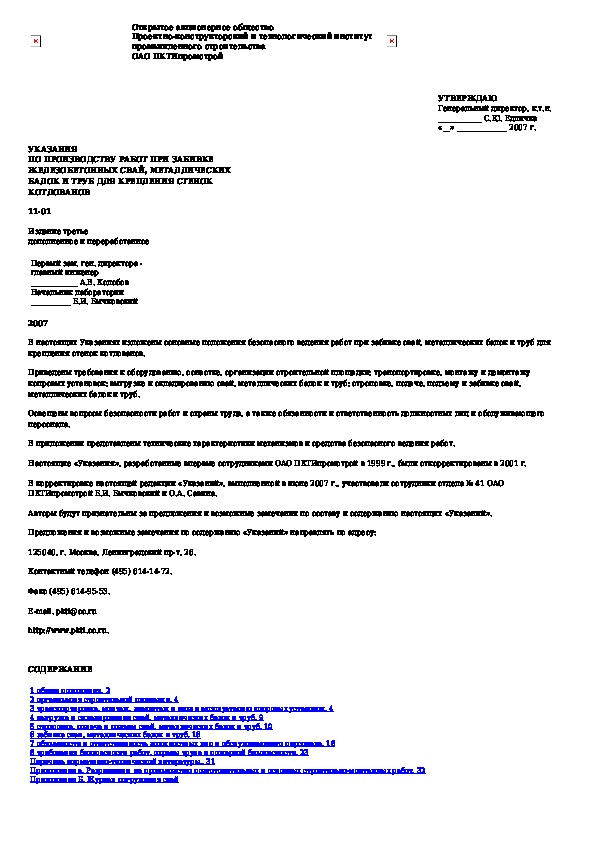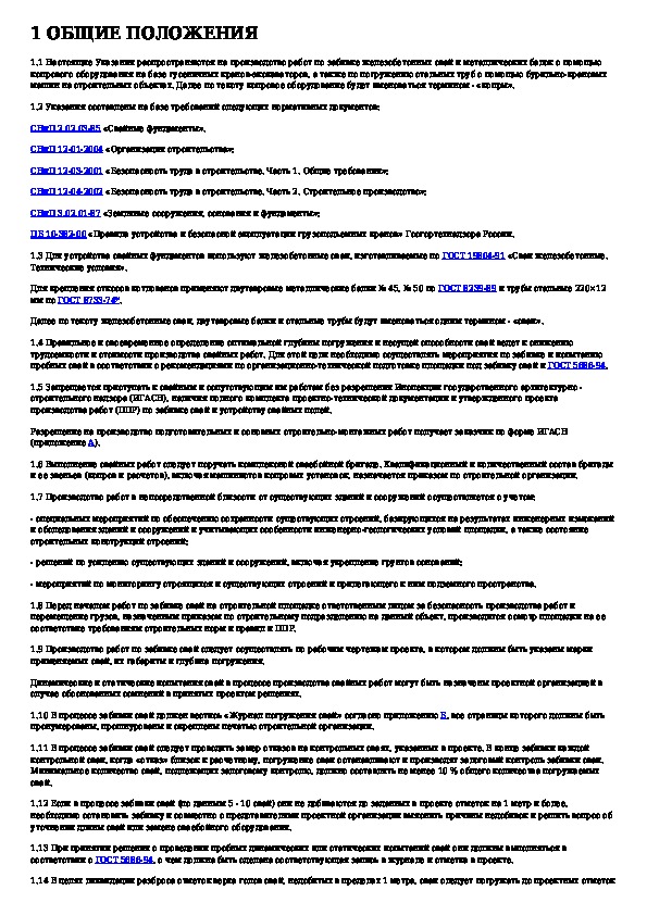 Наша цель состоит в том, чтобы предоставить вам быстрый доступ к содержанию документа Указания по производству работ при забивке железобетонных свай, металлических балок и труб для крепления стенок котлованов.