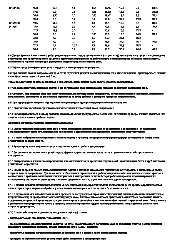 11-01: Указания по производству работ при забивке железобетонных свай, металлических балок и труб для крепления стенок котлованов