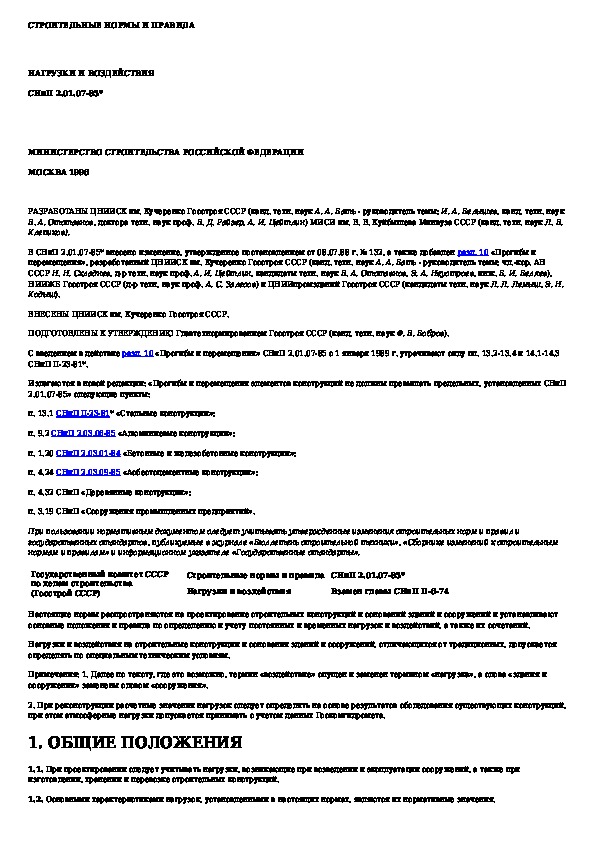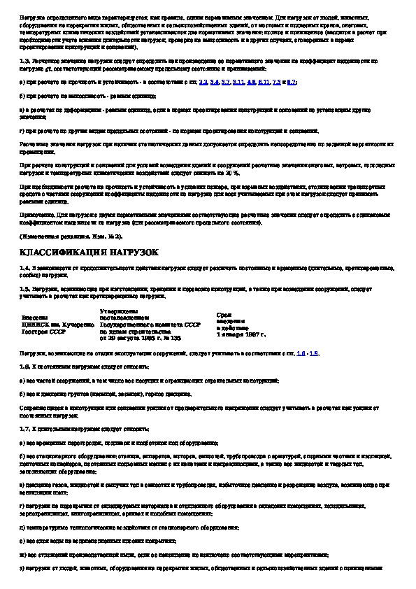 СНиП 2.01.07-85*: Нагрузки и воздействия