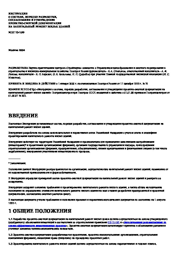 • Просмотр в полноэкранном режиме - легко просмотреть документ Инструкция о составе, порядке разработки, согласования и утверждения проектно-сметной документации на капитальный ремонт жилых з (без загрузки его на свой компьютер).