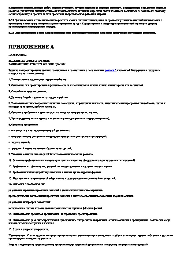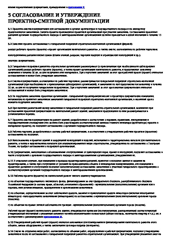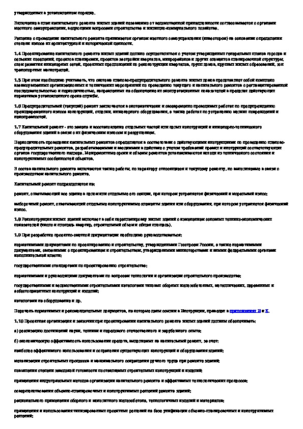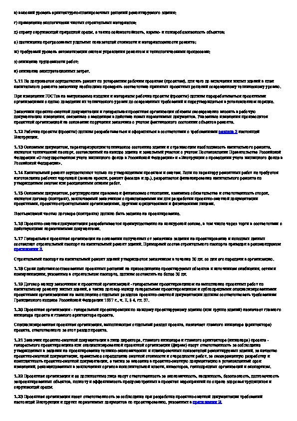 Инструкция о составе, порядке разработки, согласования и утверждения проектно-сметной документации на капитальный ремонт жилых з