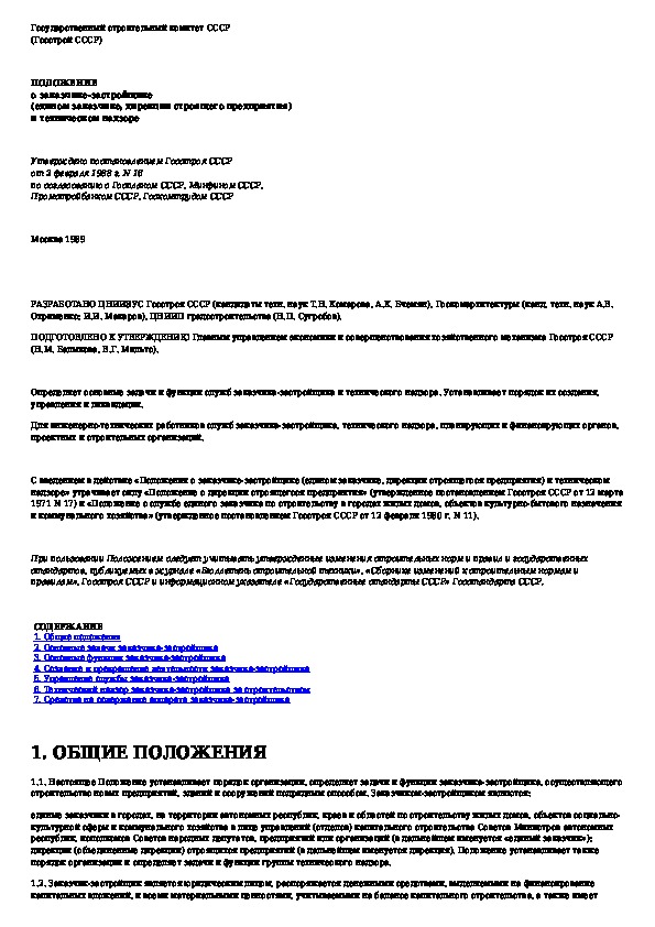 Положение о заказчике-застройщике (едином заказчике, дирекции строящегося предприятия) и техническом надзоре