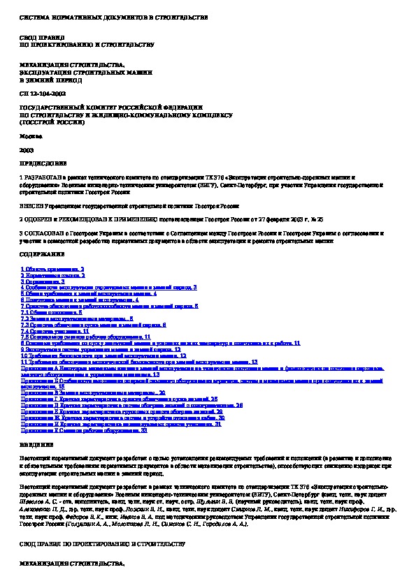 СП 12-104-2002: Механизация строительства. Эксплуатация строительных машин в зимний период