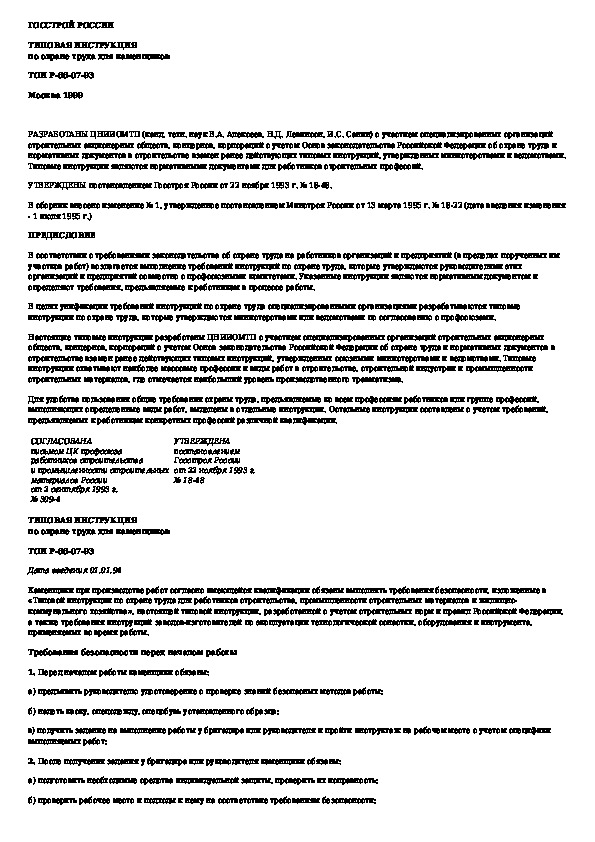 Наша цель состоит в том, чтобы предоставить вам быстрый доступ к содержанию документа Типовая инструкция по охране труда для каменщиков.
