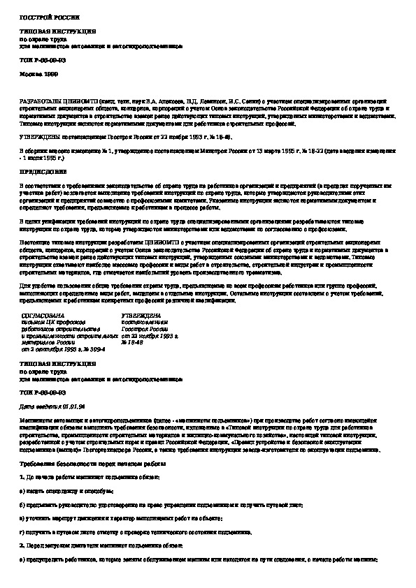 ТОИ Р-66-09-93: Типовая инструкция по охране труда для машинистов автовышек и автогидроподъемников