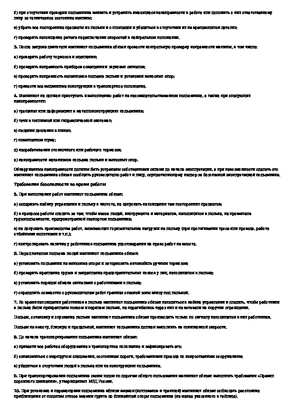 Типовая инструкция по охране труда для машинистов автовышек и автогидроподъемников