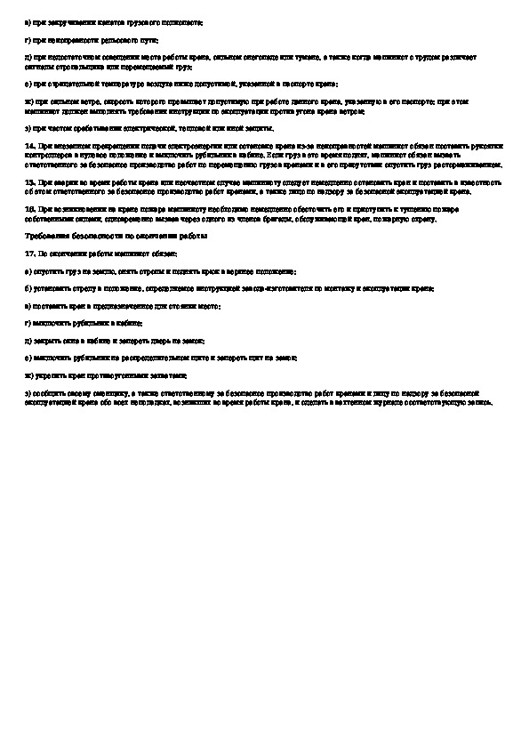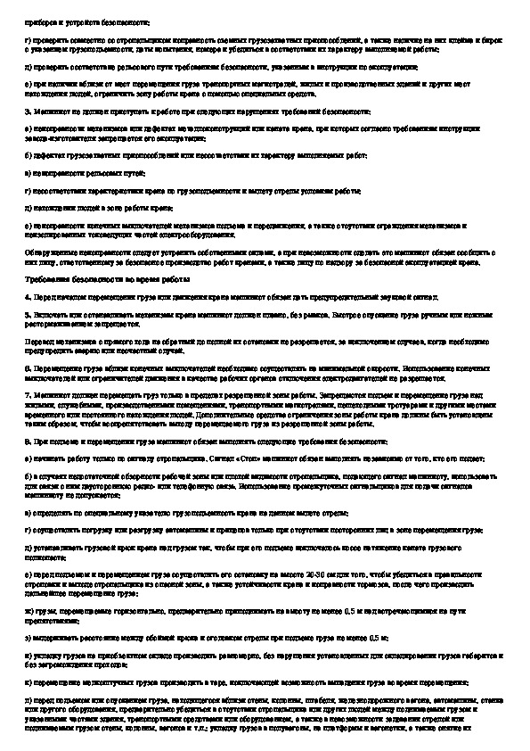 Типовая инструкция по охране труда для машинистов башенных кранов