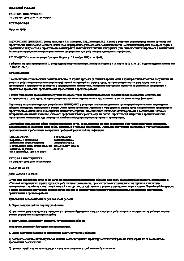 Наша цель состоит в том, чтобы предоставить вам быстрый доступ к содержанию документа Типовая инструкция по охране труда для штукатуров.