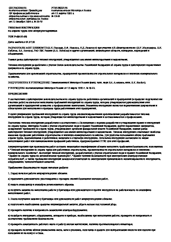 ТОИ Р-66-21-95: Типовая инструкция по охране труда для аккумуляторщиков