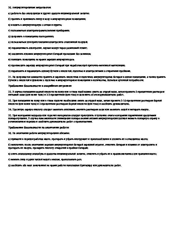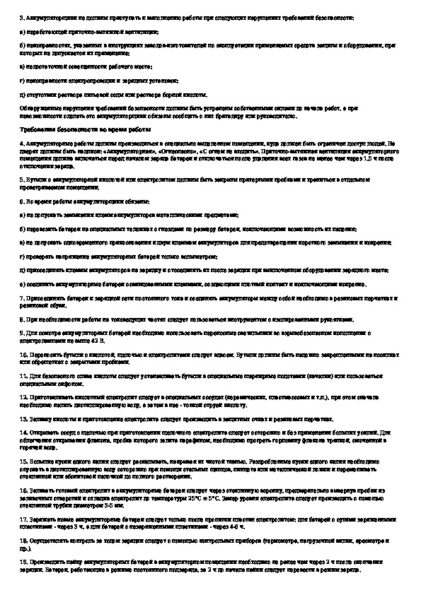 Типовая инструкция по охране труда для аккумуляторщиков